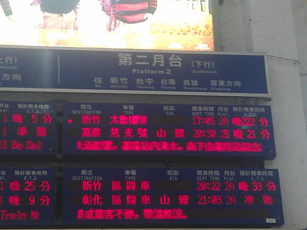 僅以這張照片記錄今天因為大雨造成鐵路災情後,通車後的誤點時間。