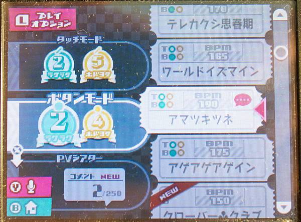 那一樣在選擇歌曲時,可以利用L/R來設定按鍵聲音或是選擇唱歌的VOCALOID或是服裝。