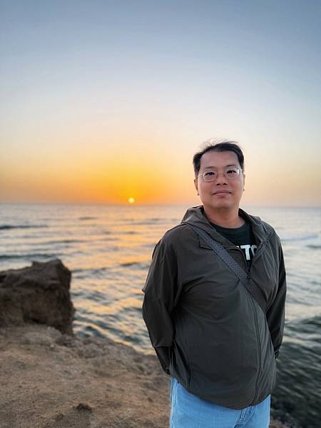 為了拍日出,還特地起個大早從飯店走到海岸邊